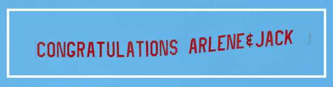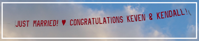 Personal messages on an airplane banner are often the highlight of an event or party. No one will ever forget a bright red biplane and banner flying overhead. Let us help you make your party or event unique. Make a gift of a banner; it's one that they will never forget!