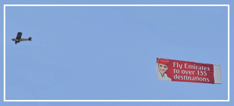 These billboards are enormous. The impact they make is even larger. People not only remember airplane banners flying by, they remember what they advertised. Aerial banners make a very high impact at a very affordable cost.